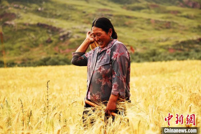 近日,在素有“玉樹糧倉”美稱的青海省玉樹藏族自治州囊謙縣,田間地頭里一派繁忙的景象。在香達鎮(zhèn)刊達村四社,一望無際的青稞呈現(xiàn)出一片金黃,顆粒飽滿,微風(fēng)拂過,穗稈被壓彎了腰。機聲轟隆,鐮刀飛舞,顆粒歸倉,豐收的喜悅寫在每個人的臉頰上。