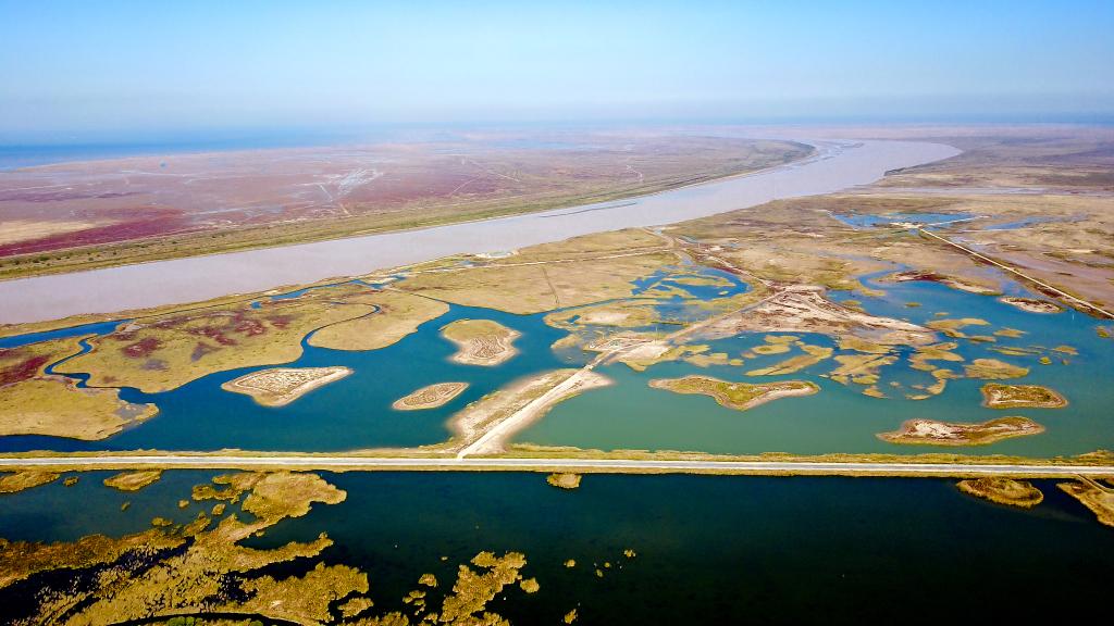 近年來,黃河三角洲國(guó)家級(jí)自然保護(hù)區(qū)建成“引、輸、蓄、排”科學(xué)生態(tài)補(bǔ)水體系,同時(shí)著力構(gòu)建“河—陸—灘—?!边B通體系,連通水系115公里,疏通潮溝76公里,恢復(fù)黃河與海洋的水文連通。原先的光板地、鹽堿灘,變成了水草豐茂、生物多樣性富集的大濕地。