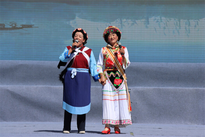來自迪慶州文化館、俏夕陽藝術(shù)團、雍恰碩藝術(shù)團等的演員們帶來了《阿尺目刮》《犁牛調(diào)》《洛吉葫蘆笙打跳》等歌舞表演和走秀,為現(xiàn)場群眾帶來了一場文化盛宴,充分展現(xiàn)了迪慶州各族兒女共同團結(jié)進步、共同繁榮發(fā)展的時代風(fēng)貌。