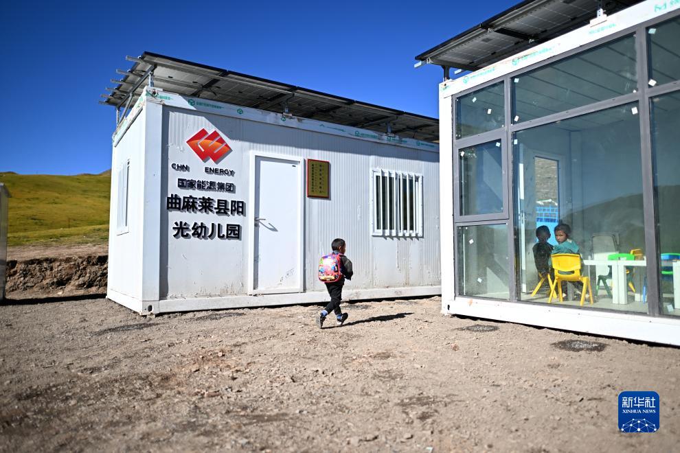 作為曲麻萊縣定點幫扶單位,國家能源集團自2022年起累計投入1350萬元,在曲麻萊縣建設15所陽光幼兒園。陽光幼兒園為集裝箱式房屋,配備屋頂離網儲能光伏系統(tǒng),可以滿足供暖、照明等需求。幼兒園招收居住在周邊牧場的兒童,讓孩子們在離家不遠處就能接受學前教育。