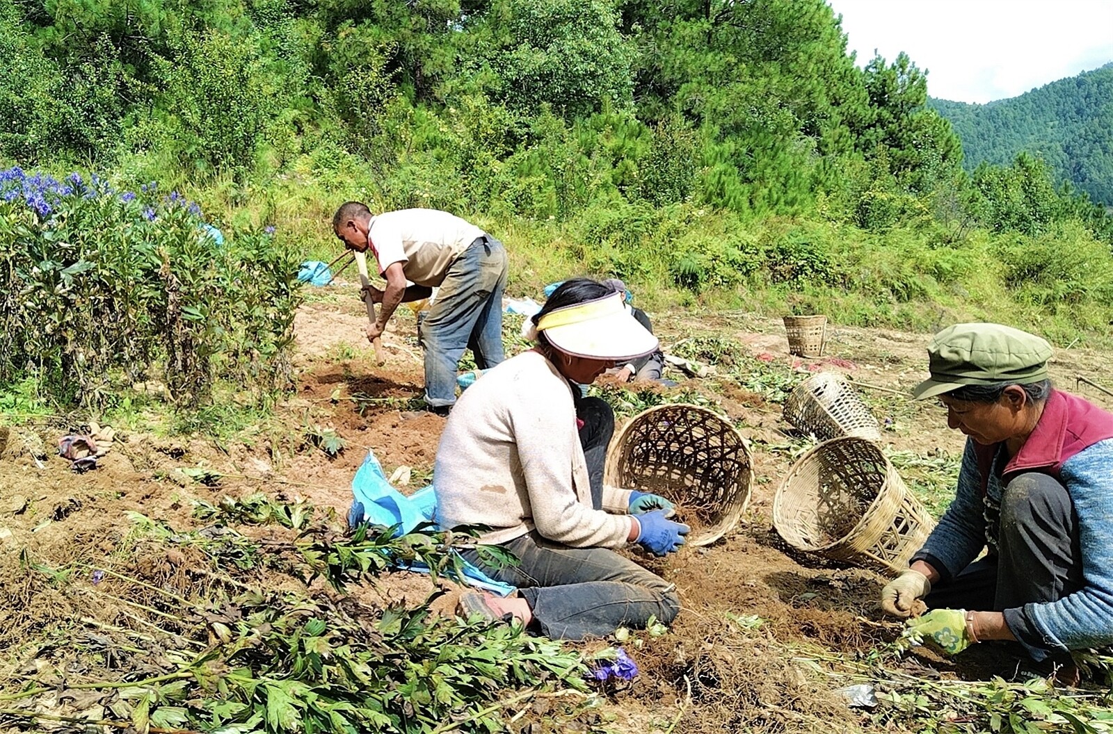 近日,維西傈僳族自治縣攀天閣鄉(xiāng)美洛村400余畝附子喜獲豐收。田間地頭,村民們?nèi)宄扇?,通力協(xié)作,將一顆顆采挖出來的附子收集成籮,集裝成袋,看著眼前的一袋袋附子,村民們都樂得合不攏嘴?!敖衲旮阶赢a(chǎn)量很高呢,按照去年的市場價今年一畝最多可有2萬收入”美洛村副主任和麗新說。