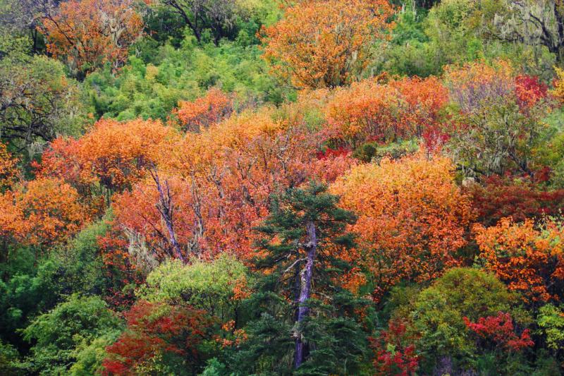 香格里拉深秋如打翻的調(diào)色盤,美不勝收。紅色、黃色、橙色、紫色……這是香格里拉一年中最色彩斑斕的季節(jié),也是山林入冬前的狂歡。