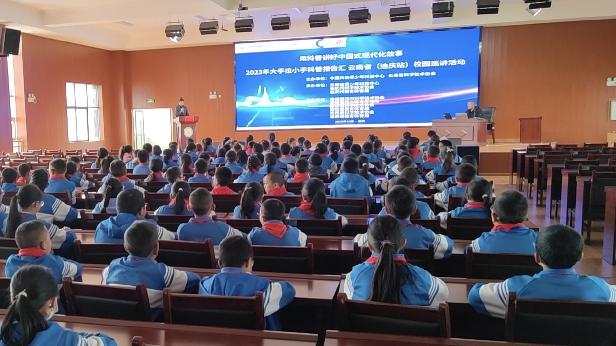 10月9日,由中國科協(xié)青少年科技中心和云南省科協(xié)共同主辦,云南省青少年科技中心、迪慶州科協(xié)、迪慶州教體局共同承辦,三縣(市)科協(xié)、教體局共同協(xié)辦的“用科普講好中國式現(xiàn)代化故事——2023年‘大手拉小手’科普報(bào)告會云南省校園巡講活動”在迪慶州正式拉開帷幕。