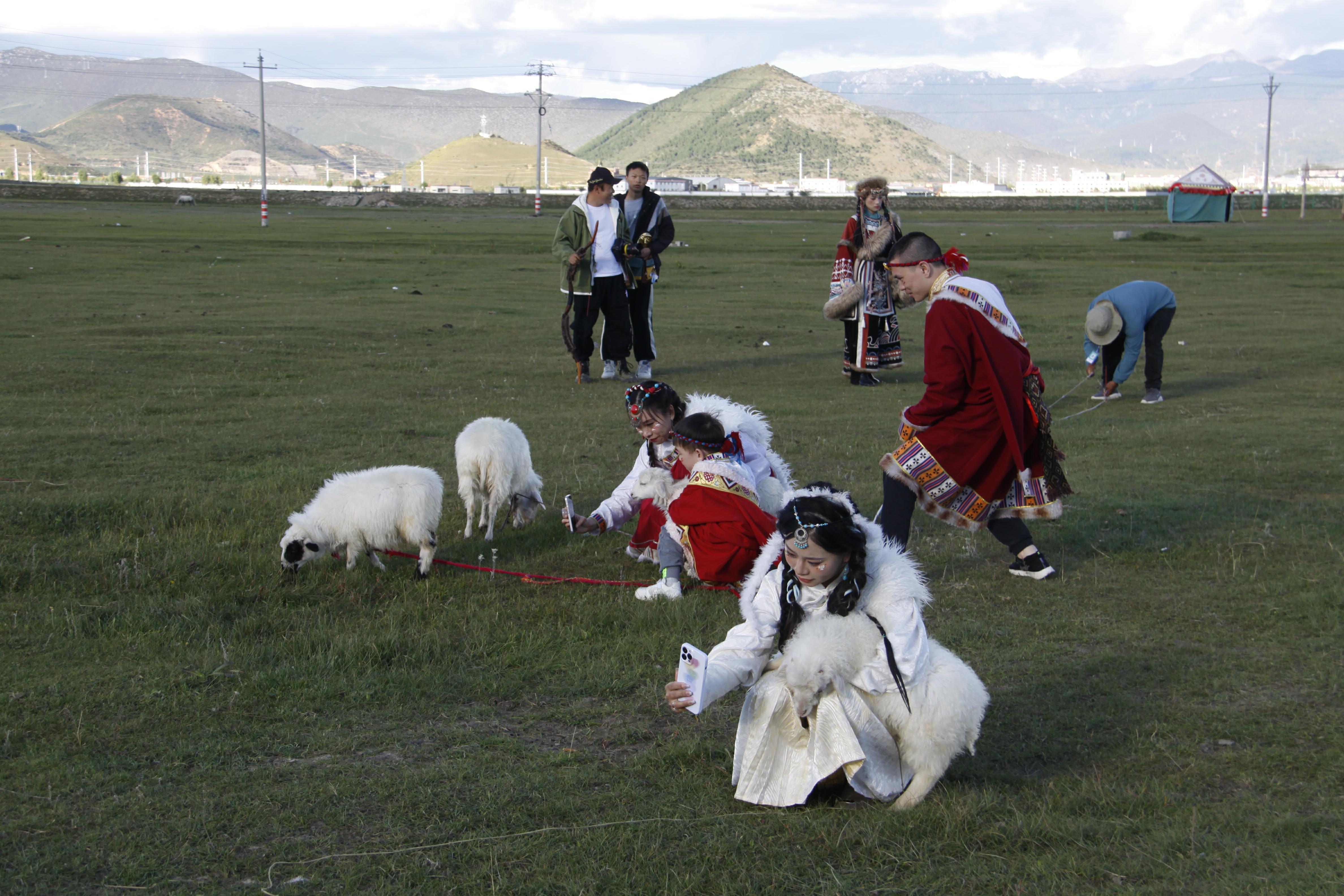 時下,迪慶高原秋景如畫。眾多游客紛紛到香格里拉市建塘草原打卡,在藍天白云下,有的騎馬賞景,有的身著民族服裝旅拍,還有的與小綿羊親密接觸,構成了一道道亮麗的風景線。