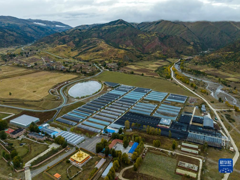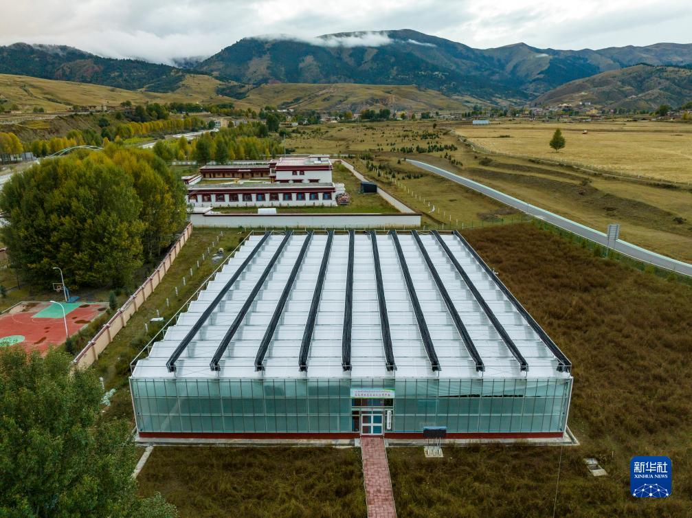 這是10月13日在理塘縣瑪吉阿米花園農(nóng)莊拍攝的智慧農(nóng)業(yè)無土栽培館(無人機(jī)照片)。新華社記者 沈伯韓 攝