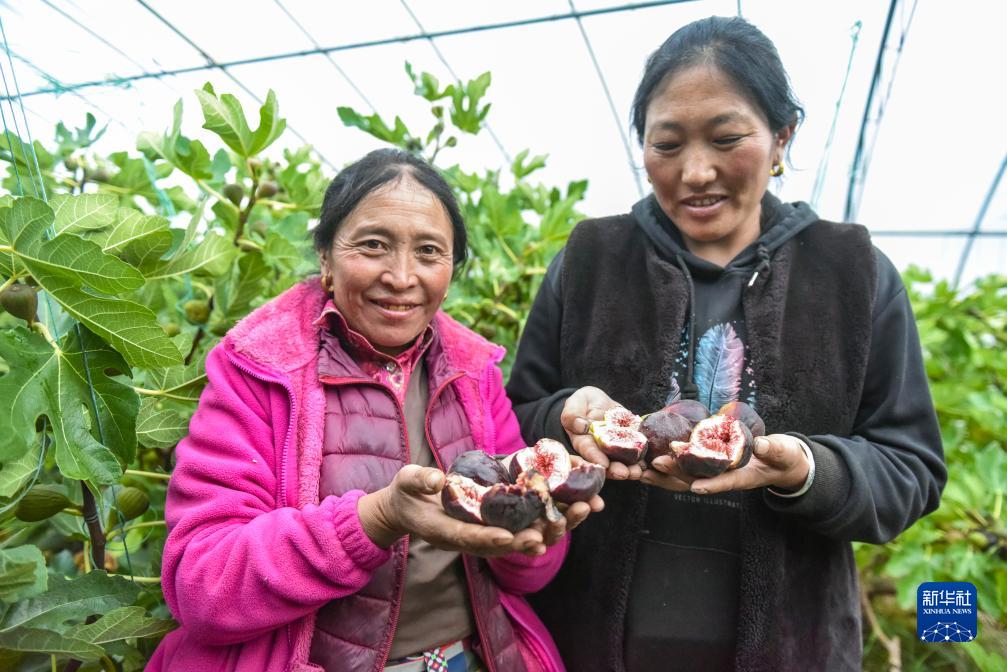 10月13日,在理塘縣瑪吉阿米花園農(nóng)莊的高原蔬菜大棚里,當(dāng)?shù)夭刈迦罕娭粳敐扇剩ㄗ螅┖退湔故静烧臒o花果。新華社記者 黃曉勇 攝