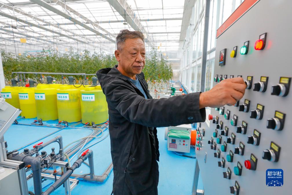 10月13日,在理塘縣瑪吉阿米花園農(nóng)莊的智慧農(nóng)業(yè)無土栽培館,工作人員劉振國操作控制柜。新華社記者 沈伯韓 攝