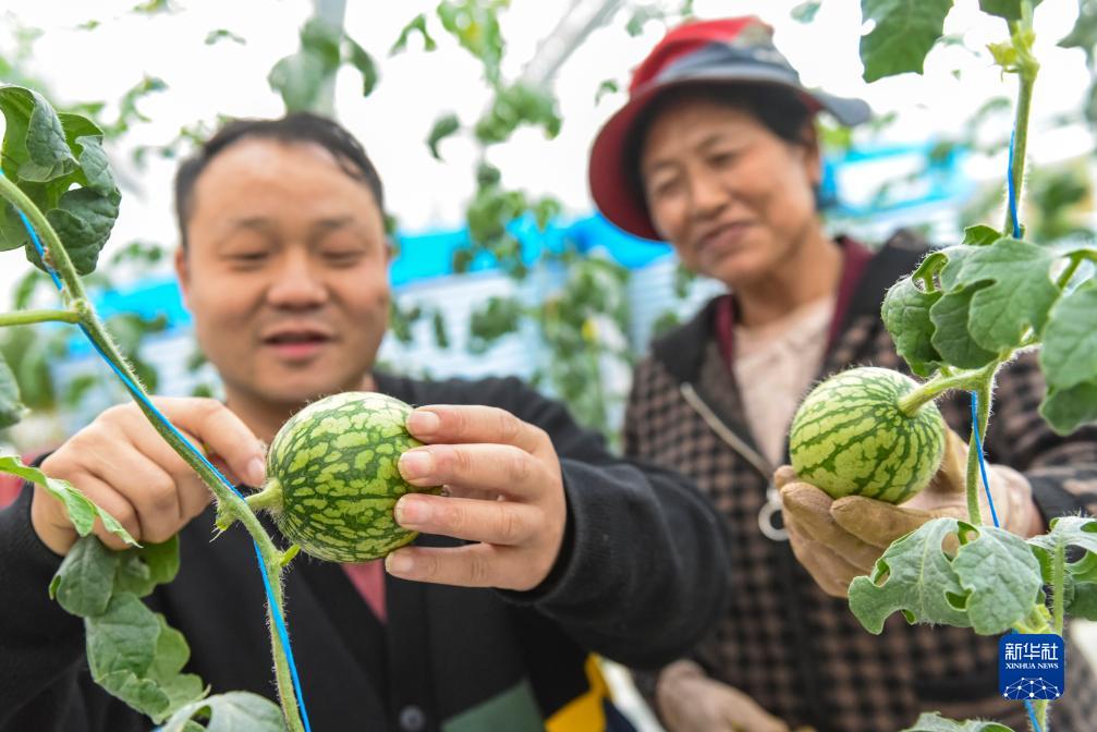 10月13日,在理塘縣瑪吉阿米花園農(nóng)莊的智慧農(nóng)業(yè)無土栽培館,農(nóng)莊負(fù)責(zé)人丁義(左)向當(dāng)?shù)夭刈迦罕娮楷敁碇抑v解玲瓏西瓜的管理技術(shù)和注意事項。新華社記者 黃曉勇 攝