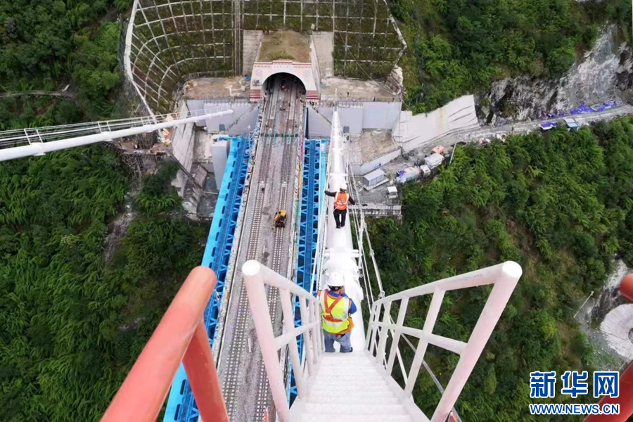 10月18日,滇藏鐵路麗江至香格里拉段金沙江特大橋迎來“體檢”,中國鐵路昆明局集團有限公司廣通工電段工務系統(tǒng)靜態(tài)驗收組的12名橋隧工,克服高空、高寒、高海拔的“三高”考驗,攀爬在距離江面約250米的大橋上,對橋梁鋼拱頂端開展靜態(tài)驗收。