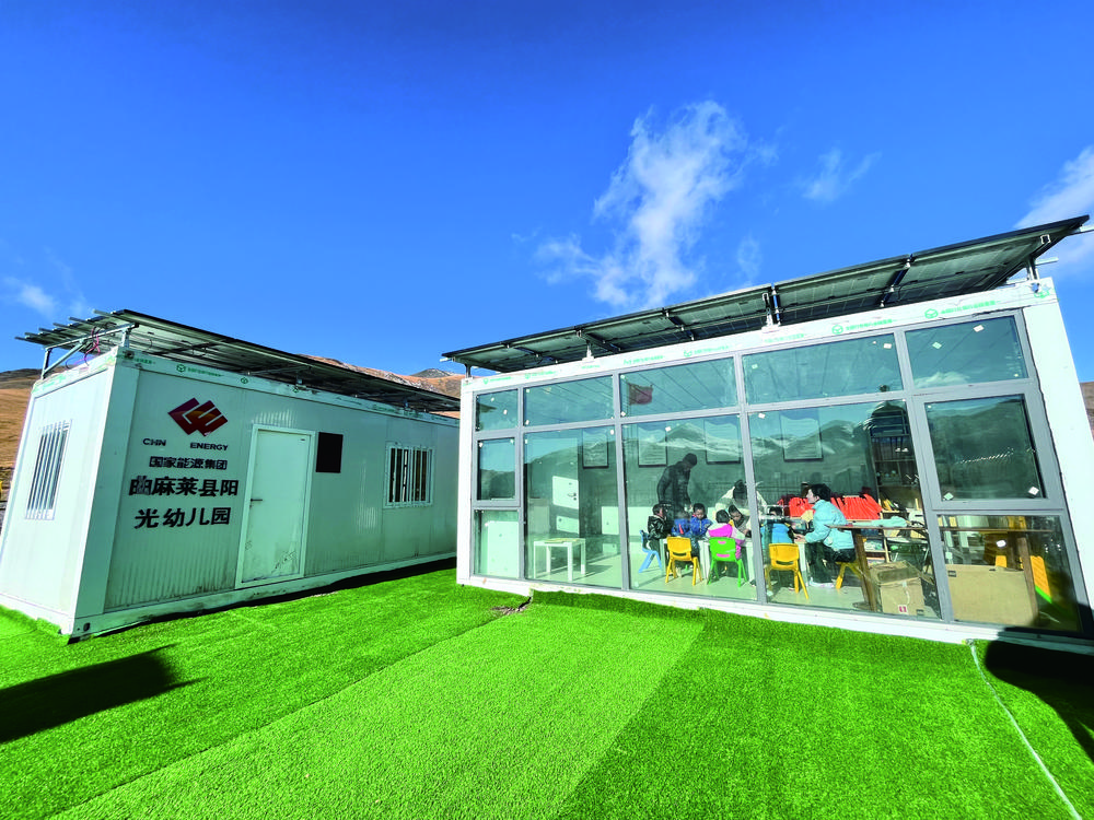 “迷你”幼兒園由兩個(gè)集裝箱組成,箱頂裝有太陽(yáng)能光伏系統(tǒng),可以滿(mǎn)足供暖、照明等需求。兩個(gè)集裝箱分別是孩子們的教室和功能室。溫暖的陽(yáng)光透過(guò)一扇大大的落地窗照進(jìn)教室,孩子們和老師在里面一起看書(shū)學(xué)習(xí)做游戲,雖然室外寒風(fēng)凜冽,但教室內(nèi)卻非常溫暖。
