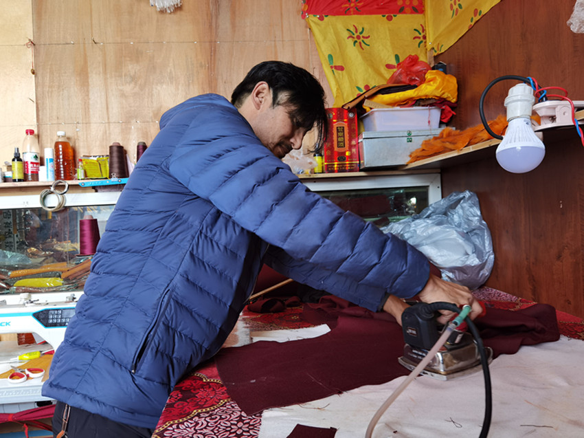 “噠噠噠,噠噠噠……”近日,筆者走進(jìn)白玉縣阿察鎮(zhèn)昌拖村村集體經(jīng)濟(jì)商品房,映入眼簾的是一位正踩著縫紉機(jī)踏板穿針引線,縫補(bǔ)衣服的租客。他叫白瑪,是德格縣人,因妻子是該村村民,結(jié)婚后便在此居住,2020年村里修建了村集體經(jīng)濟(jì)商品房后,夫妻倆經(jīng)過商量后決定租用進(jìn)行創(chuàng)業(yè)。