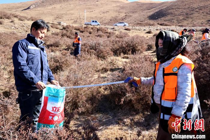 圖為管護(hù)員清理洮河沿線垃圾。薛蒂 攝