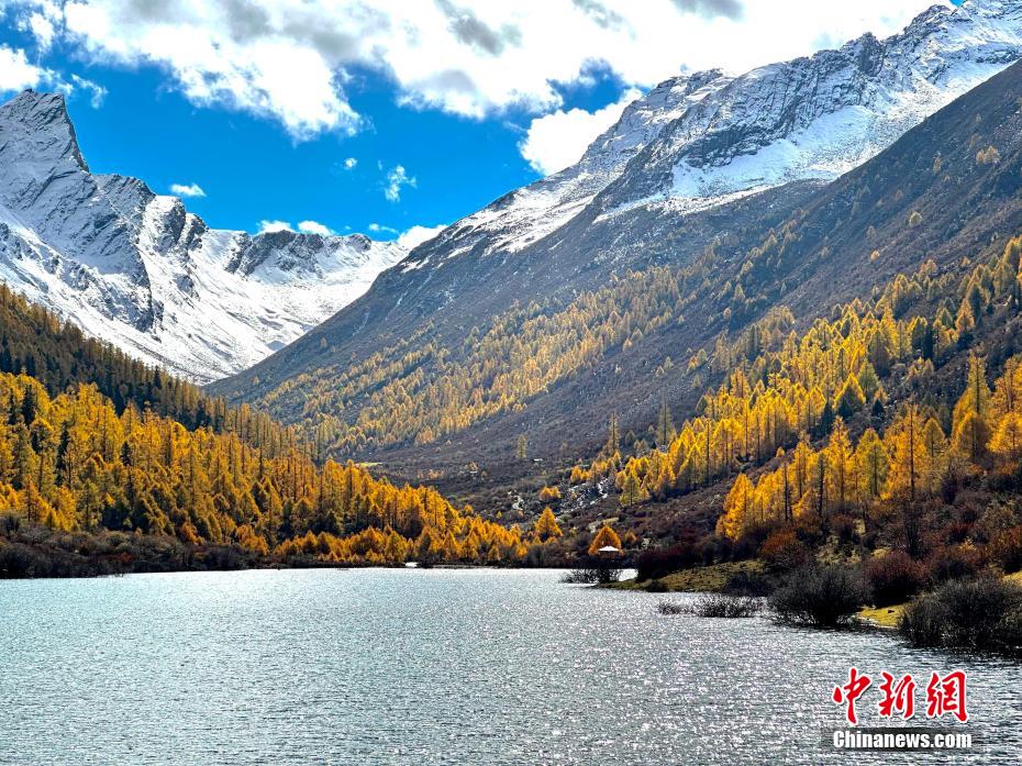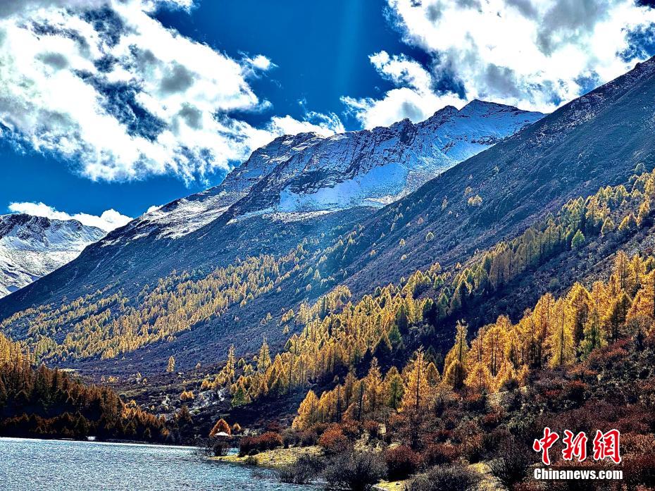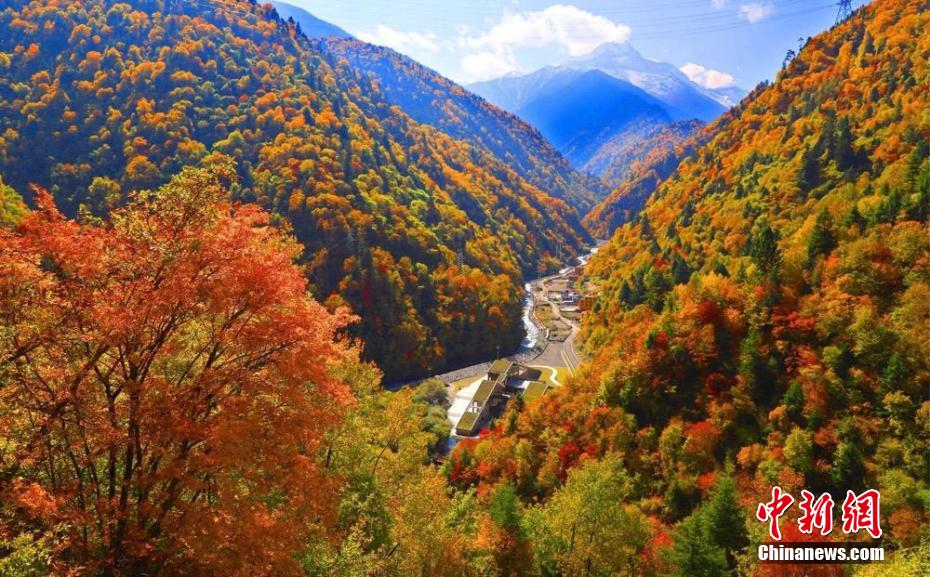 深秋時(shí)節(jié),四川省阿壩州小金縣瑪嘉溝迎來一年中最美季節(jié),雪山、冰川、海子、針葉林、原始森林等在藍(lán)天白云下變得色彩斑斕,層林盡染,已是一幅半山彩林半山雪的壯觀景象。陳邦亮 攝
