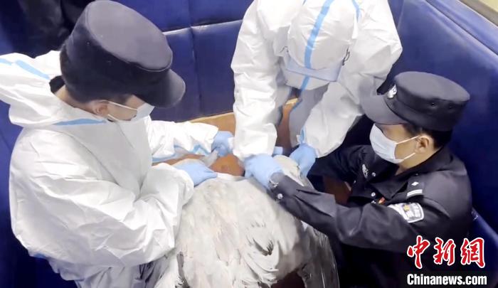圖為民警和瑪可河林業(yè)局工作人員對灰鶴進行詳細檢查。曹民鍇 供圖