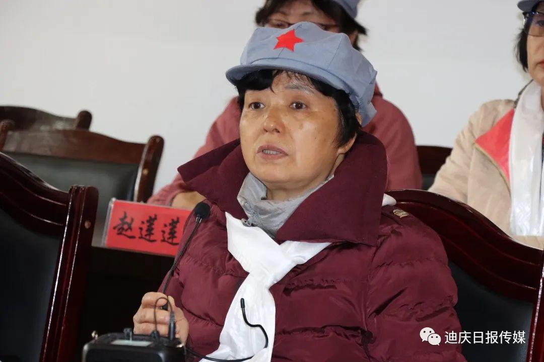 甘祖昌之女甘仁榮回憶起父親,眼中噙滿淚水。其父親甘祖昌,中國人民解放軍少將軍銜,被稱為“將軍農(nóng)民”。1926年參加村農(nóng)民協(xié)會,1927年加入中國共產(chǎn)黨,翌年參加中國工農(nóng)紅軍。在革命生涯中,歷任湘贛軍區(qū)紅軍兵工廠副科長、八路軍第三五九旅供給部軍需科科長、三五九旅供給部副部長、晉綏軍區(qū)三五九旅供給部部長、西北野戰(zhàn)軍第二縱隊后勤部部長、第一野戰(zhàn)軍二軍后勤部部長等職。先后參加了國內(nèi)革命戰(zhàn)爭、抗日戰(zhàn)爭、解放戰(zhàn)爭,為了黨和人民的事業(yè)出生入死、數(shù)次負傷 。中華人民共和國成立后,甘祖昌歷任新疆軍區(qū)后勤部副部長兼供給處處長,兼財務處處長,新疆軍區(qū)后勤部部長。1955年被授予少將軍銜,榮獲八一勛章、獨立自由勛章、解放勛章等 。1957年,甘祖昌在辭去新疆軍區(qū)后勤部部長的職務后,帶著家人回到闊別20多年的家鄉(xiāng),從此開始了29年的“農(nóng)民生涯”。從江西到延安再到新疆,甘祖昌將人生中三分之二的時光都奉獻給了國家獨立和民族解放的革命斗爭中。其母親龔全珍是開國少將甘祖昌夫人、江西省萍鄉(xiāng)市南陂小學原校長。1957年8月,龔全珍隨丈夫甘祖昌回家鄉(xiāng)江西省蓮花縣務農(nóng)并一直從事鄉(xiāng)村教師工作。離休后,又扶貧助學,開辦“龔全珍工作室”服務社區(qū)、群眾。著有紀實作品《我和老伴甘祖昌》。習近平總書記先后兩次親切接見龔全珍,親切地稱她為“老阿姨”。龔全珍曾榮獲第四屆全國道德模范稱號、“感動中國”2013年度十大人物 、全國優(yōu)秀共產(chǎn)黨員 、“感動江西十大教育年度人物”“全國模范退役軍人”等稱號。甘仁榮在座談會上談及父母從小對子女嚴苛的家教,從飯桌上絕不能浪費一粒糧的教育再到了父母離開城市回農(nóng)村搞建設(shè)的過往,從幼兒的少不更事,到如今自己親身來到迪慶,感受父輩走過的路,真切地體會到了父輩身上不畏艱險、堅韌不拔、頑強拼搏、攻堅克難的奮斗精神和為黨和人民的事業(yè)“鞠躬盡瘁、死而后已”的偉大獻身精神?,F(xiàn)場氣氛莊嚴肅穆,令人感動。