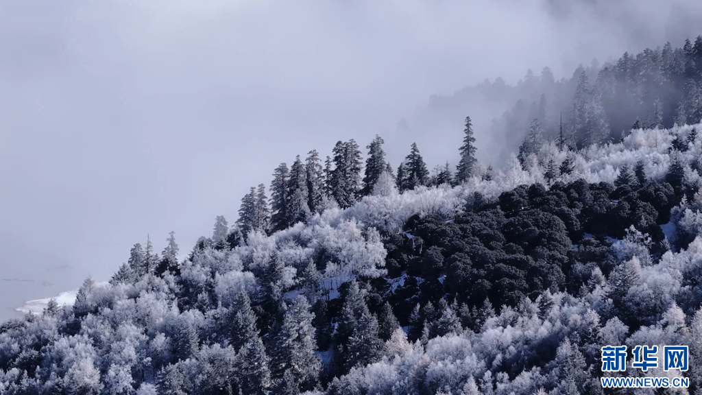 銀裝素裹的普達(dá)措景區(qū)(11月20日攝)。新華網(wǎng) 趙冬蓮 攝