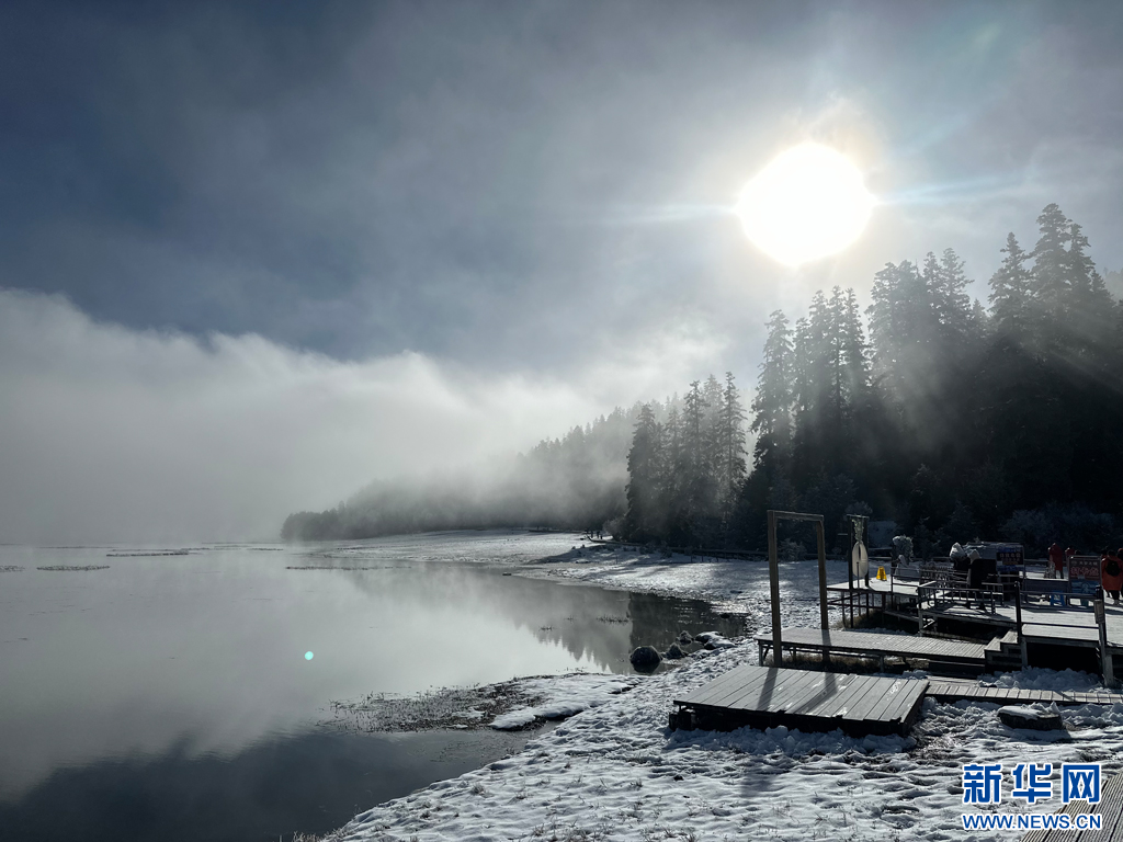 銀裝素裹的普達(dá)措景區(qū)(11月20日攝)。新華網(wǎng)發(fā)(普達(dá)措景區(qū) 供圖)