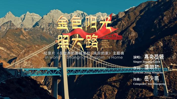 主題曲《金色陽(yáng)光照大路》MV始于動(dòng)車飛馳通過金沙江特大橋的畫面,雪山腳下、虎跳峽之上,一條“金色大道”已徐徐鋪就。從央宗一家放牧轉(zhuǎn)場(chǎng)的羊腸小道,到今日開通運(yùn)營(yíng)的麗香鐵路,該片將云南涉藏洲縣的發(fā)展進(jìn)步、社會(huì)和諧、民眾幸福的故事展現(xiàn)在全世界觀眾面前。