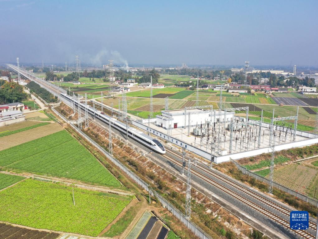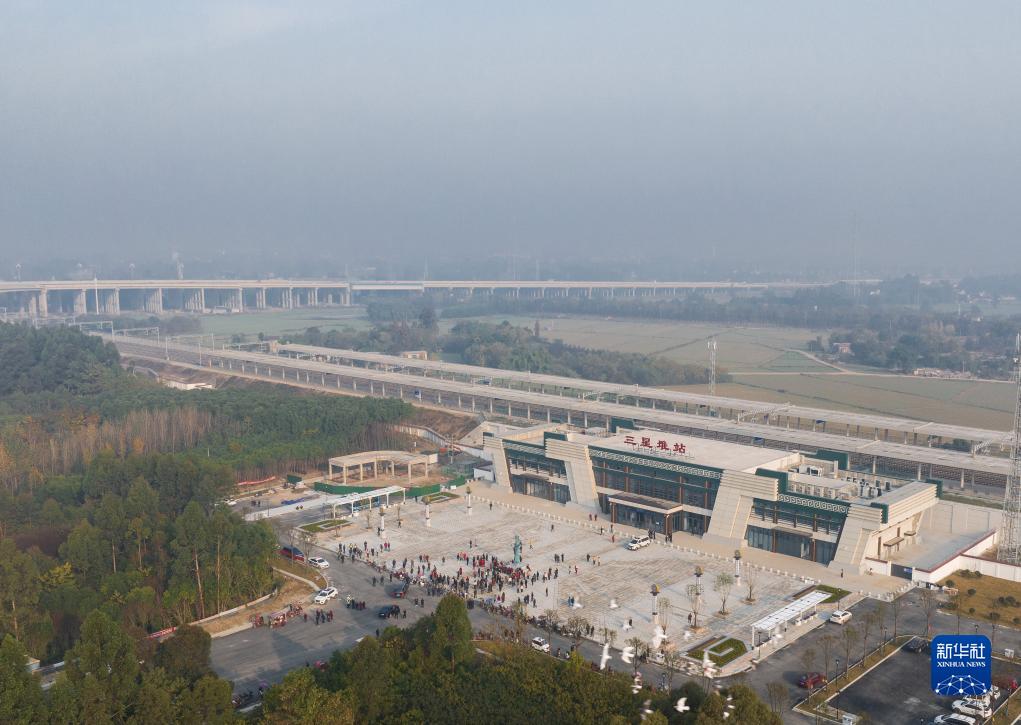 11月28日,俯瞰川青鐵路三星堆站(無人機照片)。新華社記者 江宏景 攝
