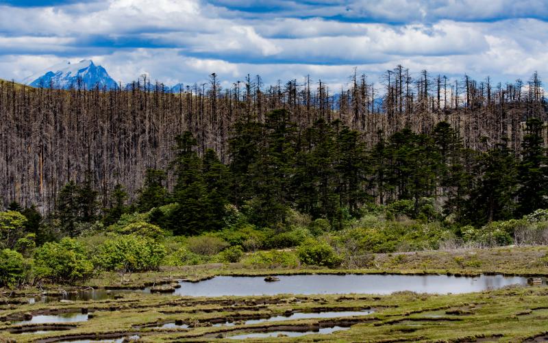 碧沽天池周圍30多平方公里的地方被原始森林覆蓋,樹木高大挺拔,多為云杉和冷杉。還有綠茵茵的牧場(chǎng)、安靜的牛羊群,以及動(dòng)人心魄的杜鵑花。