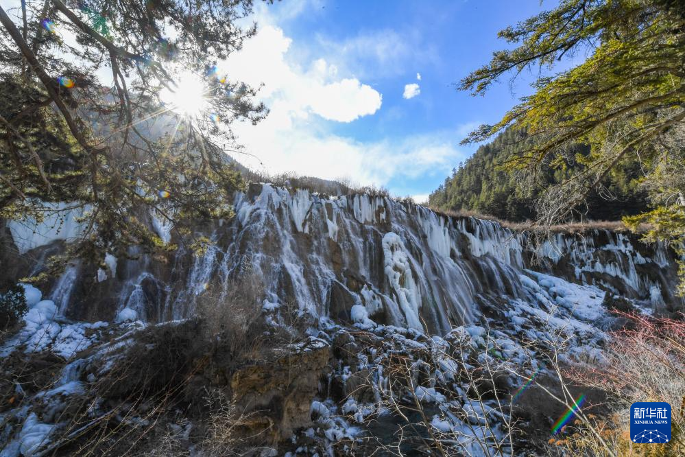 在冬日九寨溝遇見冰瀑暖陽