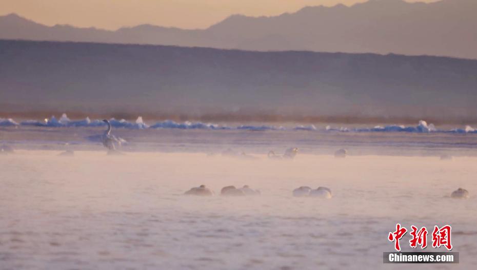 上百只天鵝飛抵柴達木盆地可魯克湖越冬