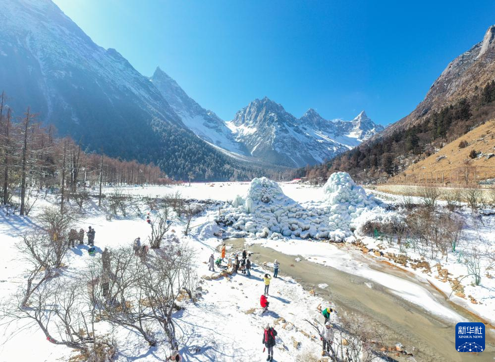 1月25日,游客在畢棚溝風(fēng)景區(qū)觀光(無人機照片)。新華社記者 王曦 攝