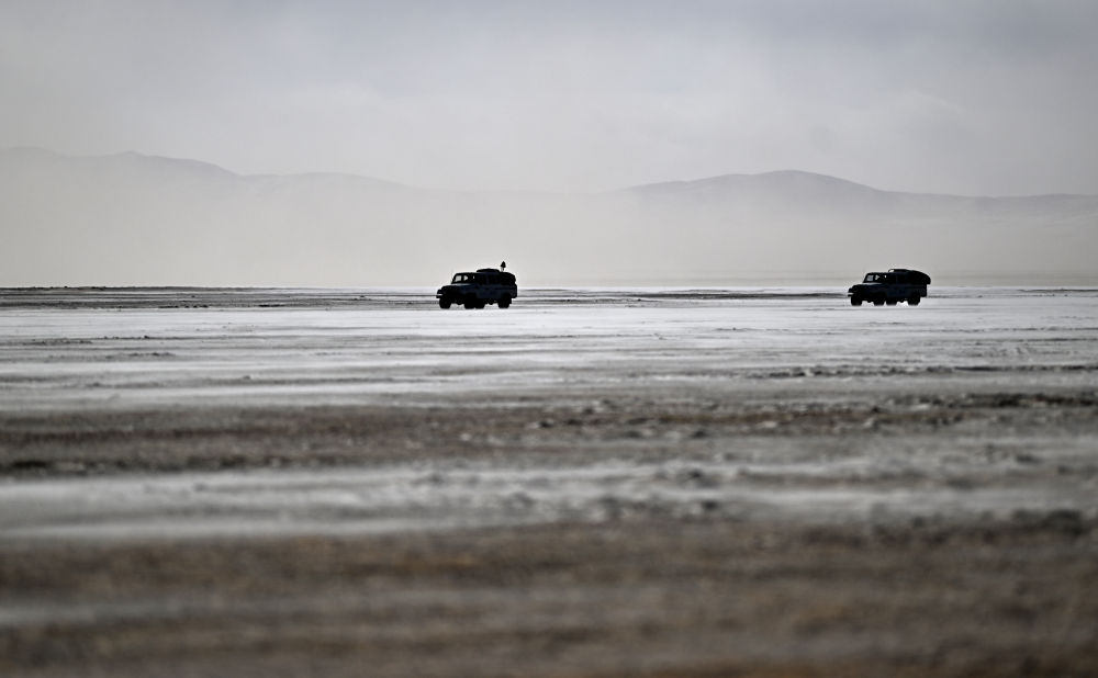 可可西里森林公安局巡山車輛在可可西里卓乃湖區(qū)域附近巡查途中(1月19日攝)。新華社記者 張宏祥 攝
