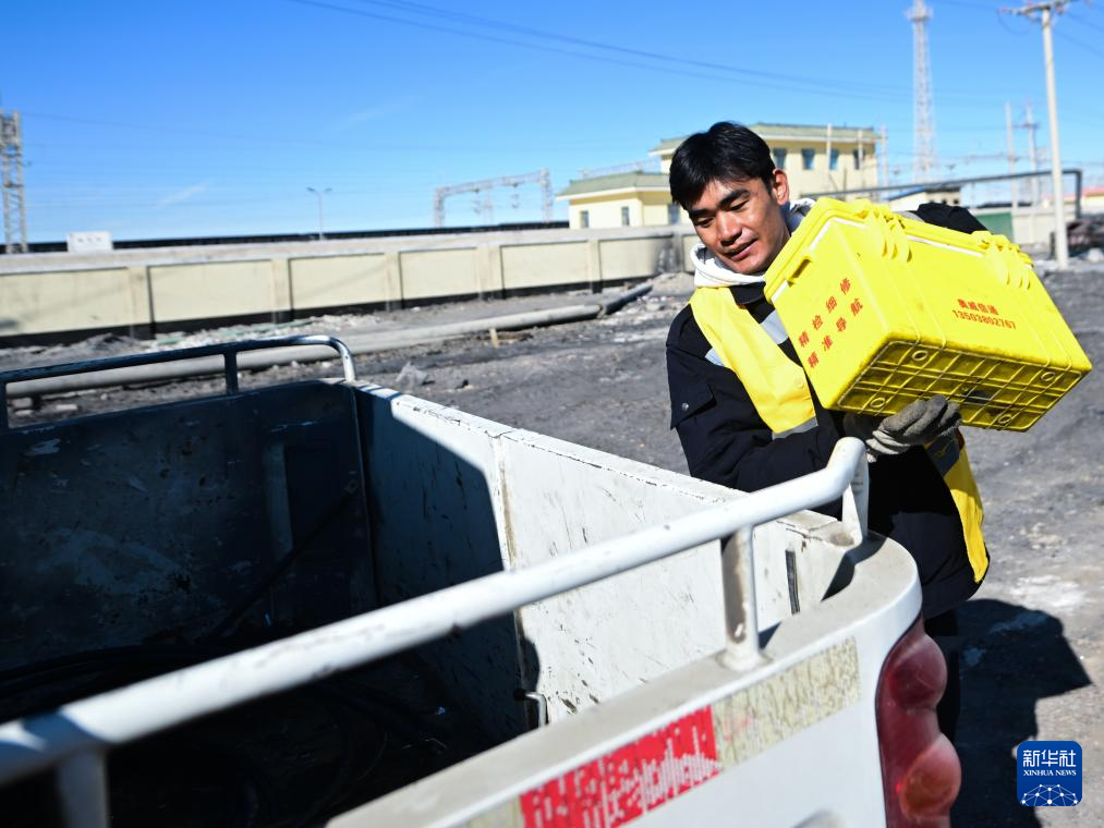 1月29日,格爾木電務(wù)段格爾木東信號車間察爾汗信號工區(qū)職工普布旦增將工具箱裝車準(zhǔn)備前往區(qū)間進(jìn)行作業(yè)。新華社記者 張龍 攝