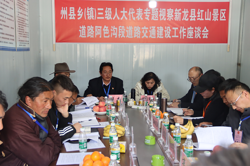 “設(shè)計(jì)車(chē)流承載量有多大,什么時(shí)候能夠完全竣工?”“要件都辦齊沒(méi)有?資金到位情況咋樣?”“全縣群眾對(duì)這條路充滿(mǎn)期望和關(guān)注,一定要加快進(jìn)度、嚴(yán)格監(jiān)管,保證安全、質(zhì)量和環(huán)保;政府要統(tǒng)籌推動(dòng),相關(guān)部門(mén)要各司其職,確保把這條路建成惠民路、發(fā)展路、生態(tài)路、廉潔路……”2023年4月7日,新龍縣紅山景區(qū)道路阿色溝段建設(shè)施工現(xiàn)場(chǎng),二十多名州、縣、鄉(xiāng)人大代表一邊查看道路建設(shè)情況,一邊對(duì)縣政府分管副縣長(zhǎng)和相關(guān)部門(mén)負(fù)責(zé)人提出問(wèn)題和建議。一問(wèn)一答之間,彰顯人大依法履職、服務(wù)發(fā)展的責(zé)任和擔(dān)當(dāng)。