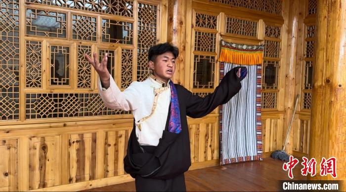 “我偶爾會將傳統(tǒng)藏戲和現(xiàn)代唱腔結合起來,錄制短視頻在網(wǎng)上分享?!必暠.斨F(xiàn)就讀于甘肅民族師范學院,在學校里,他通過不同場合向同學展示藏戲,吸收、融合不同民族的歌唱風格,進行創(chuàng)新編曲,期待更多同齡人愛上它。