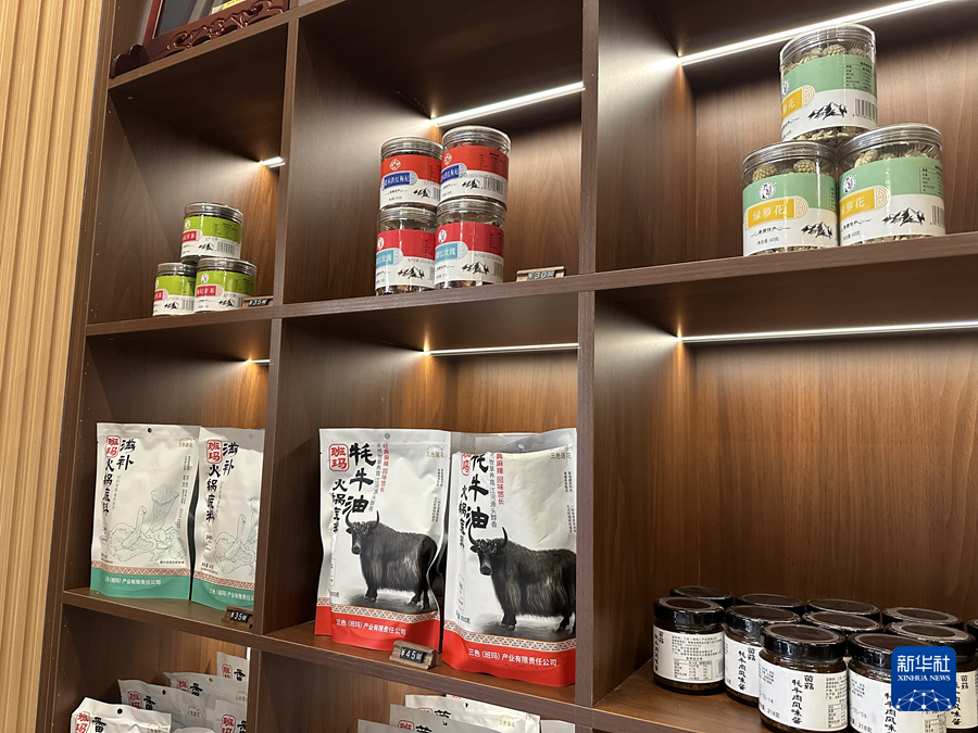 班瑪縣特色農(nóng)副產(chǎn)品銷售直營店的產(chǎn)品。新華社記者 白瑪央措 攝
