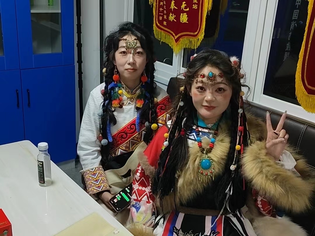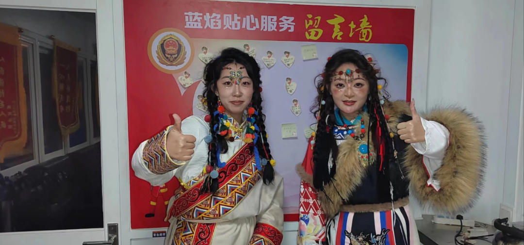 1月30日下午17時20分許,服務(wù)站迎來兩位身著藏式服裝的“卓瑪”。經(jīng)隊員了解得知,兩位“卓瑪”是外地過來旅游的,準(zhǔn)備到寺院內(nèi)部去旅拍,手上的包實在太重了,希望可以把包寄存在服務(wù)站內(nèi)。隊員立即接過她們手中的包將其安置好,并細(xì)心問到包內(nèi)是否有貴重物品之類的,確定好包內(nèi)的物品后便向他們說道:“兩位小姐姐,你們就安心去拍攝吧,不著急,拍完后回到這里取你們的東西就可以了,我們給你們守著?!彪S后兩位來自遠(yuǎn)方的“卓瑪”便開始了他們愉快的旅拍。其實大家都知道,這場旅拍沒有1個小時是不可能結(jié)束的,而這個點也快接近了隊員們歸隊吃晚飯的時間點了,但是隊員們沒有考慮吃飯的事,他們想的只是為素不相識的遠(yuǎn)方朋友盡一份義務(wù),讓他們的旅拍之行無后顧之憂。19時30分左右,兩位“卓瑪”回到了服務(wù)站,隊員隨即邀請他們坐下來休息會喝杯熱水,夜晚天氣較冷讓他們先烤會火暖一下身子再出發(fā)。
