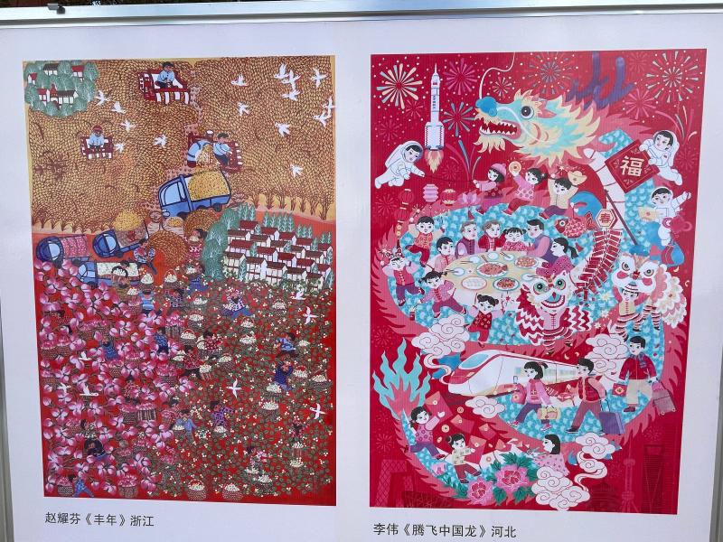 30余副年畫精品亮相展區(qū),舞龍、財神、門神、年畫娃娃……為大家?guī)硇履晗矐c氛圍。