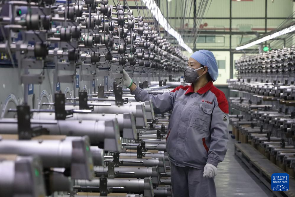 2月22日,在中復(fù)神鷹碳纖維西寧有限公司車間,工人在工作。新華社記者 王浡 攝