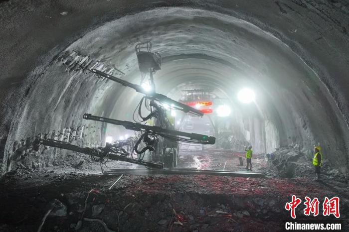 德勝隧道貫通后,施工人員加緊進(jìn)行洞壁加固施工作業(yè)。劉忠俊 攝
