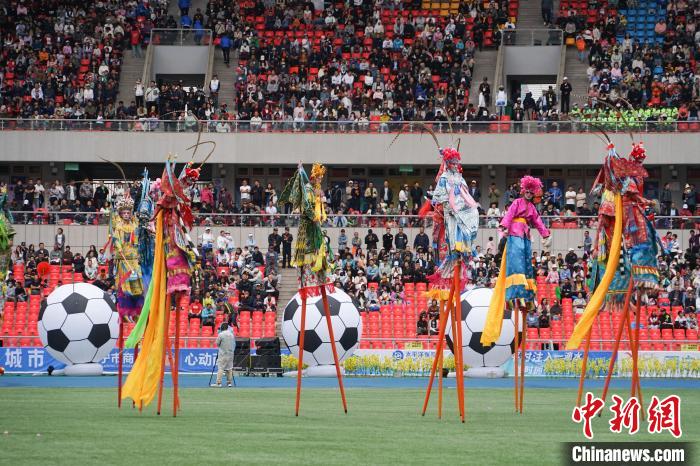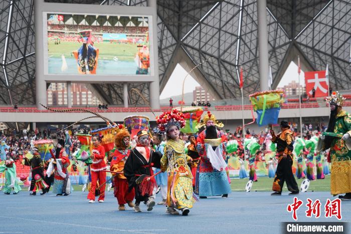 圖為開(kāi)幕式現(xiàn)場(chǎng)社火高蹺進(jìn)行表演。馬銘言 攝