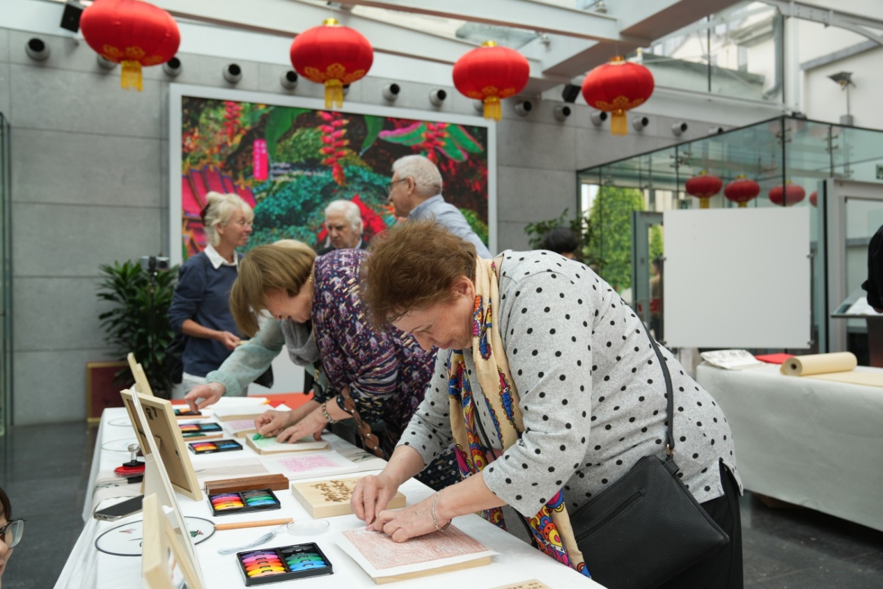 有著1800多年歷史的傳拓,堪稱(chēng)“中國(guó)最古老的印刷術(shù)”,是一種重要的文物保護(hù)和古籍修復(fù)技術(shù)。發(fā)展至今,已從拓金石發(fā)展為萬(wàn)物可拓;從拓文字、圖案發(fā)展為全形拓。為讓歐洲民眾近距離感受傳拓的獨(dú)特魅力,昆明市非物質(zhì)文化遺產(chǎn)傳承人張衡特別創(chuàng)作集立體拓、書(shū)法、篆刻等多種藝術(shù)形式為一體的“普洱茶拓”,并定制“云騰四?!ぼ鴦?dòng)天下”“茶馬古道”等拓版供嘉賓體驗(yàn)。