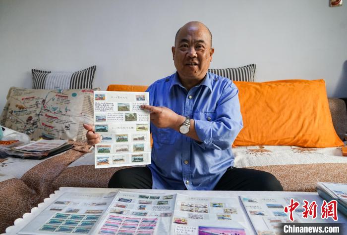 圖為徐超展示其收藏的不同國(guó)家的鐵路郵票。 馬銘言 攝