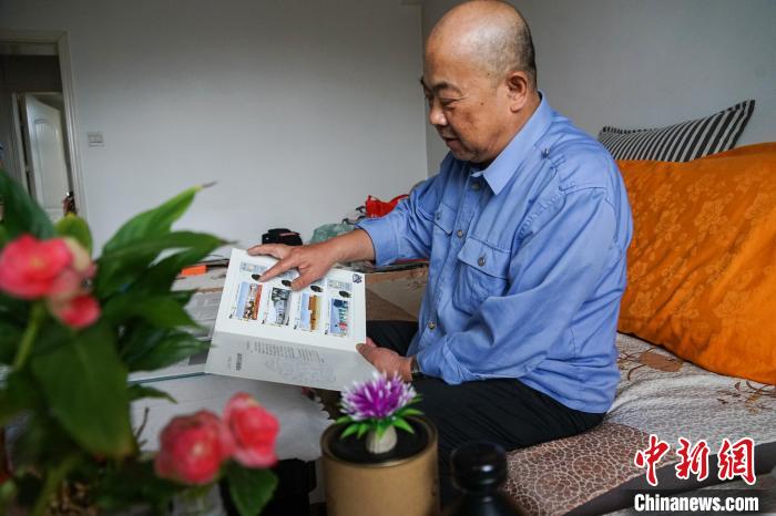 圖為徐超翻看關(guān)于青藏鐵路的紀(jì)念站臺(tái)票冊(cè)。 馬銘言 攝
