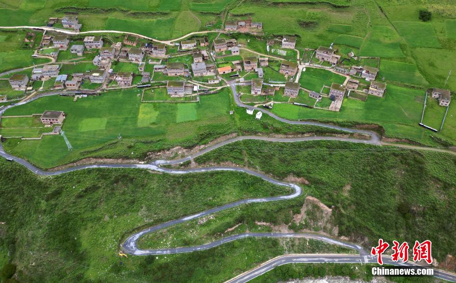 圖為6月27日,航拍措普溝景區(qū)內(nèi)的達塔村。(無人機照片)中新社記者 王磊 攝