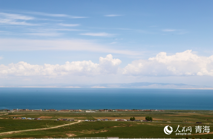 遠(yuǎn)眺青海湖。人民網(wǎng) 馬可欣 攝
