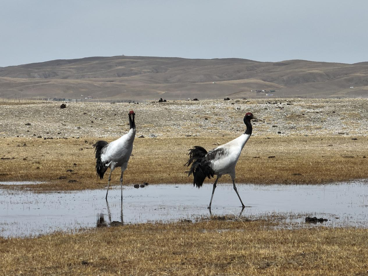 濕地中的黑頸鶴。受訪者供圖