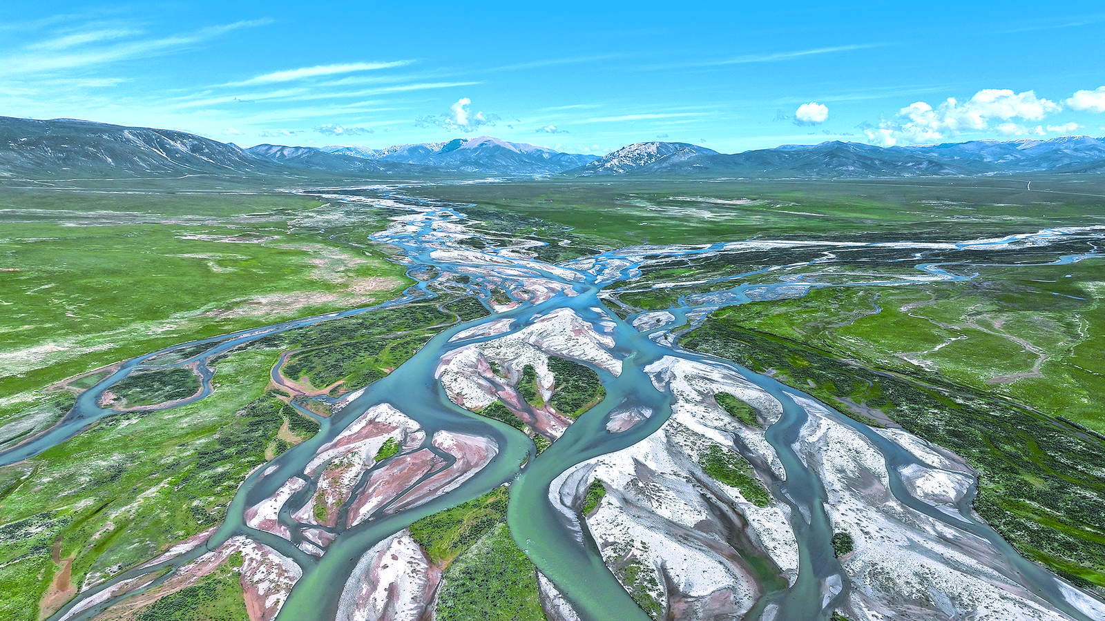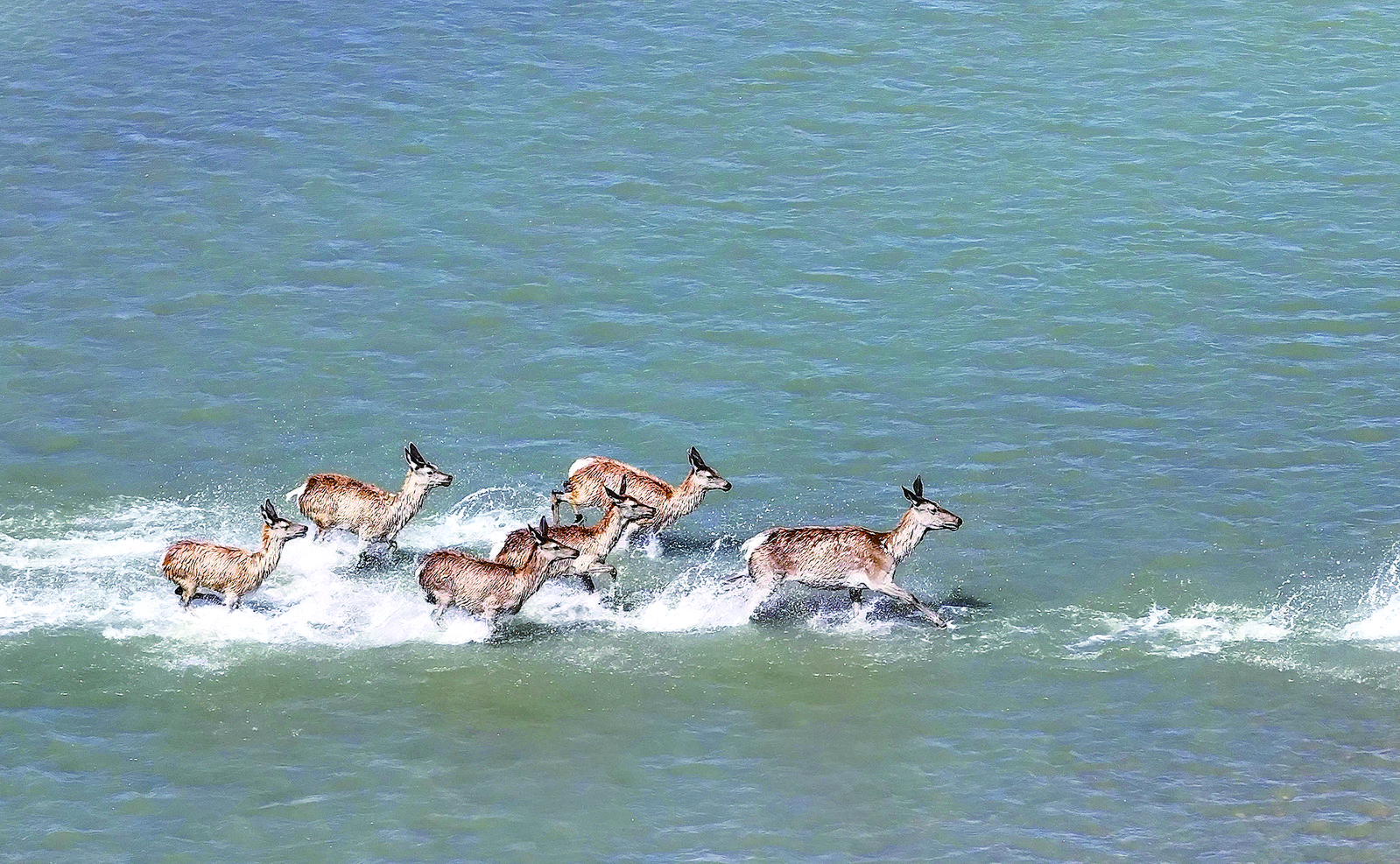 盛夏的清晨,從海西蒙古族藏族自治州天峻縣出發(fā),沿布哈河逆流而上,行進的方向,正是青海湖湟魚(裸鯉)洄游的方向。從高處俯瞰,布哈河的一條條分岔猶如人體血管,肆意流淌,但最終又歸為一處,河道兩旁甚至河道內的淺灘,密密麻麻分布著灌木林,林木簌、簌、簌……響動著,只見馬鹿林中穿梭。