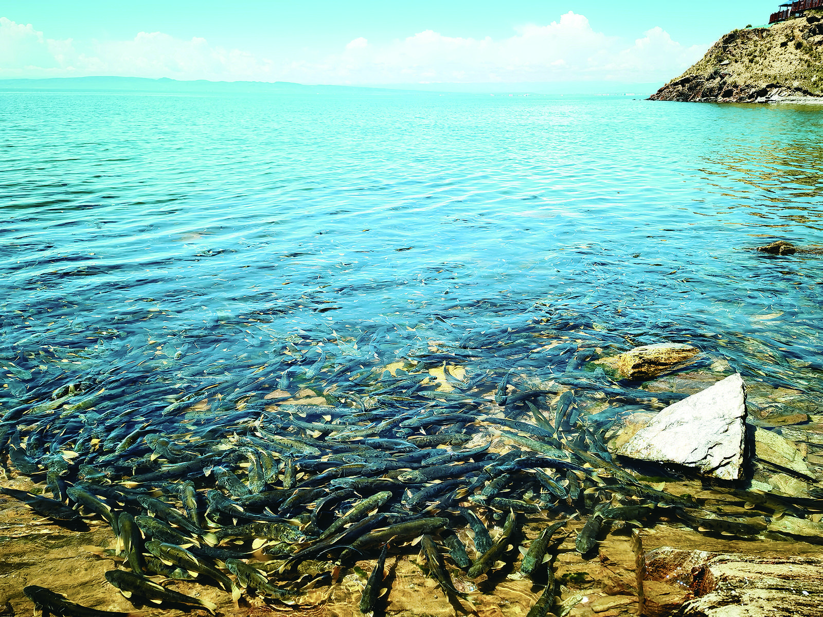 圣泉灣生態(tài)體驗(yàn)區(qū)湖邊遨游的青海湖裸鯉。