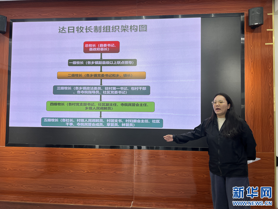 達日縣牧長制組織構(gòu)架圖。新華網(wǎng) 魚昊 攝