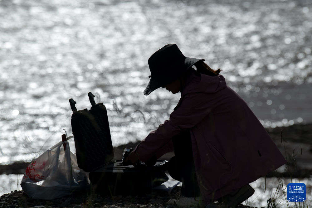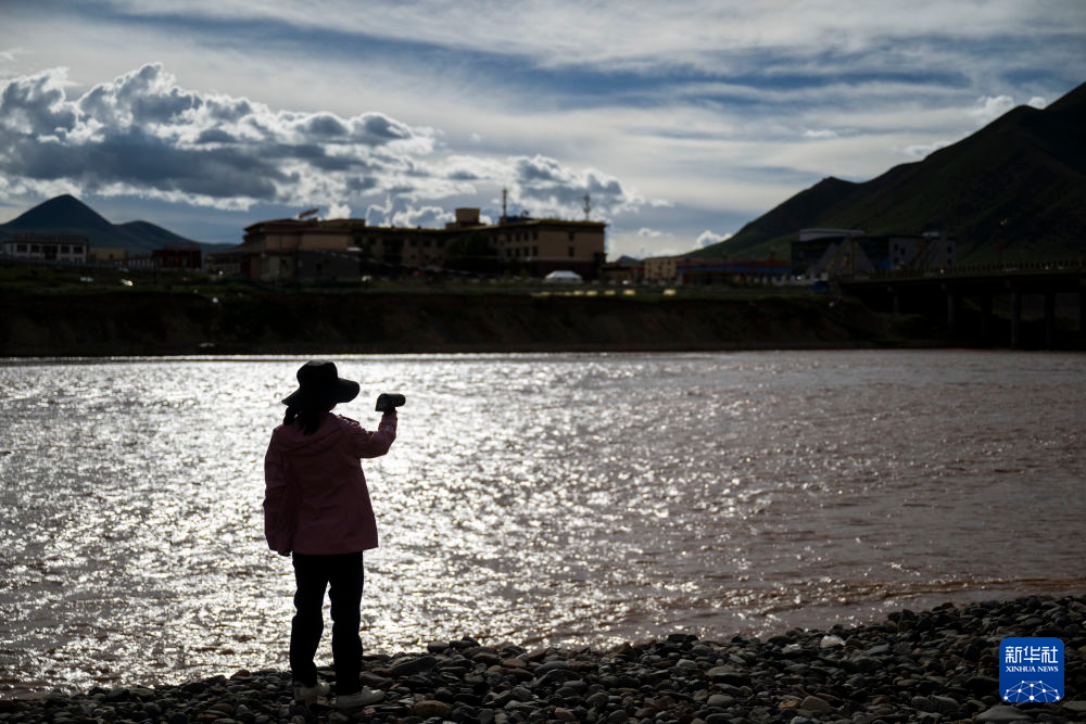 7月21日,長江科學(xué)院河流研究所的劉玉嬌在扎曲雜多段采集樣品。新華社記者 伍志尊 攝