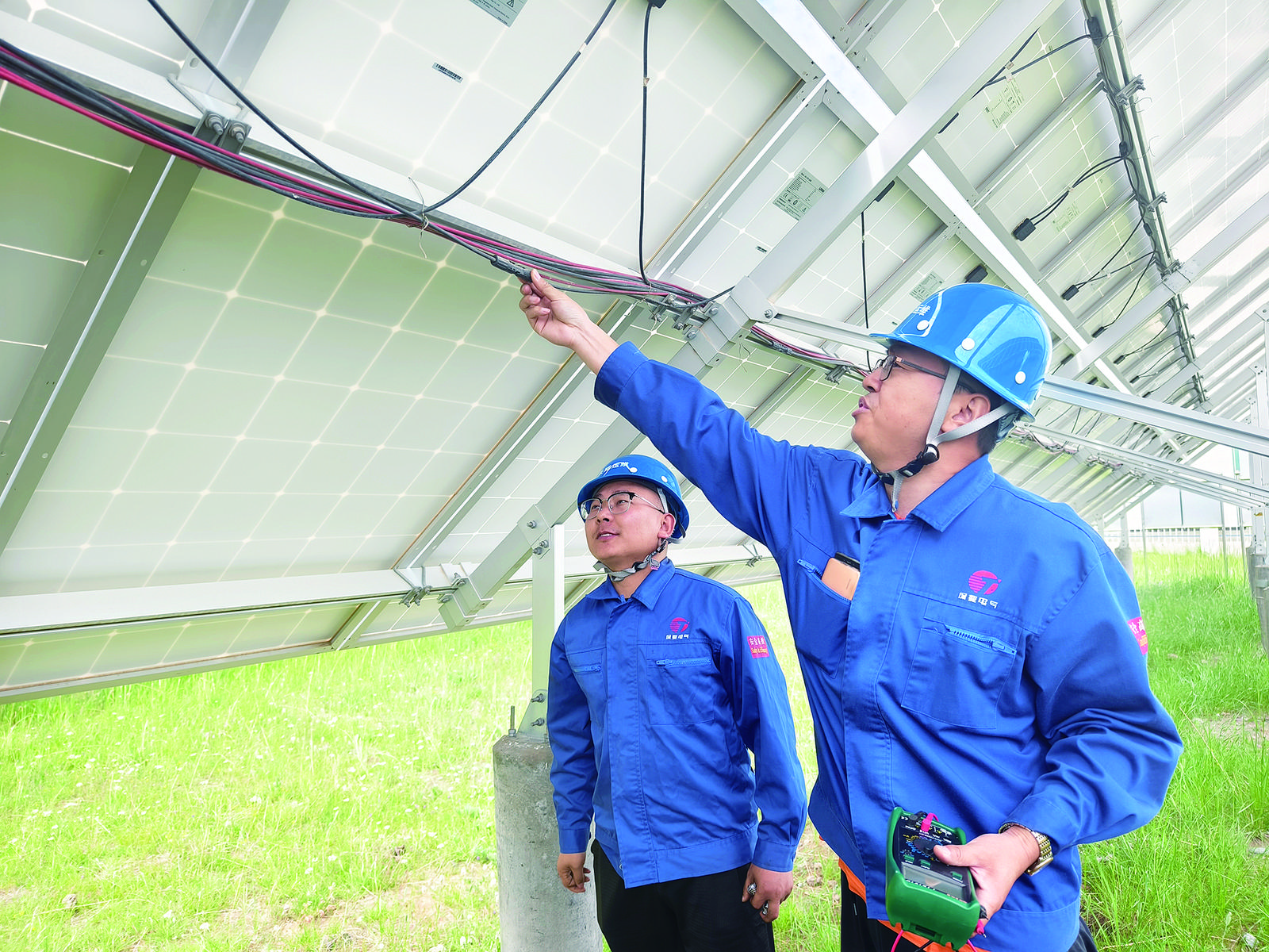 7月19日,記者來(lái)到位于青海省海北藏族自治州海晏縣甘子河鄉(xiāng)尕海村的海晏縣興輝光伏扶貧投資有限公司的光伏發(fā)電站時(shí),技術(shù)員劉光耀和王海新正在光伏區(qū)檢查設(shè)備運(yùn)行發(fā)電情況。