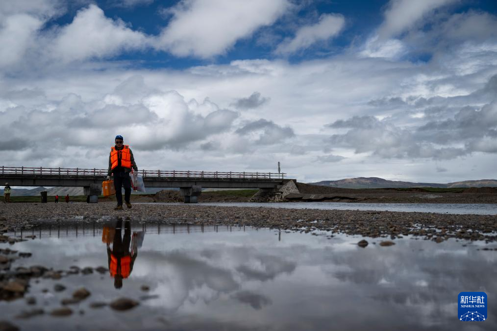 7月24日,科考隊員在通天河科欠曲進行地下水水位測量。新華社記者 潘彬彬 攝