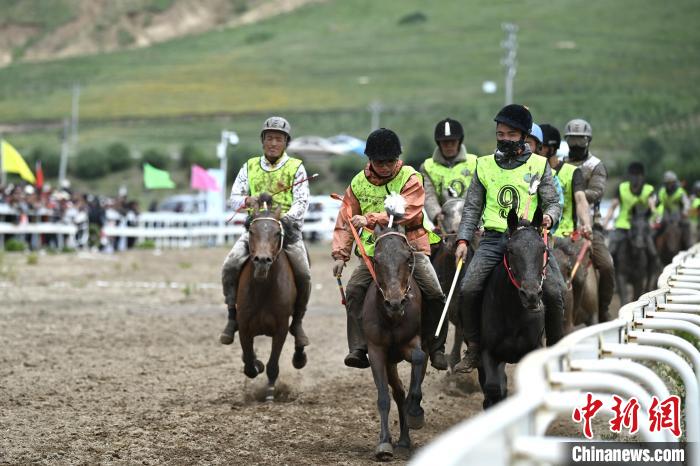 7月30日,四川理塘,比賽現(xiàn)場9號選手(右一)暫時領(lǐng)先。中新社記者 劉忠俊 攝